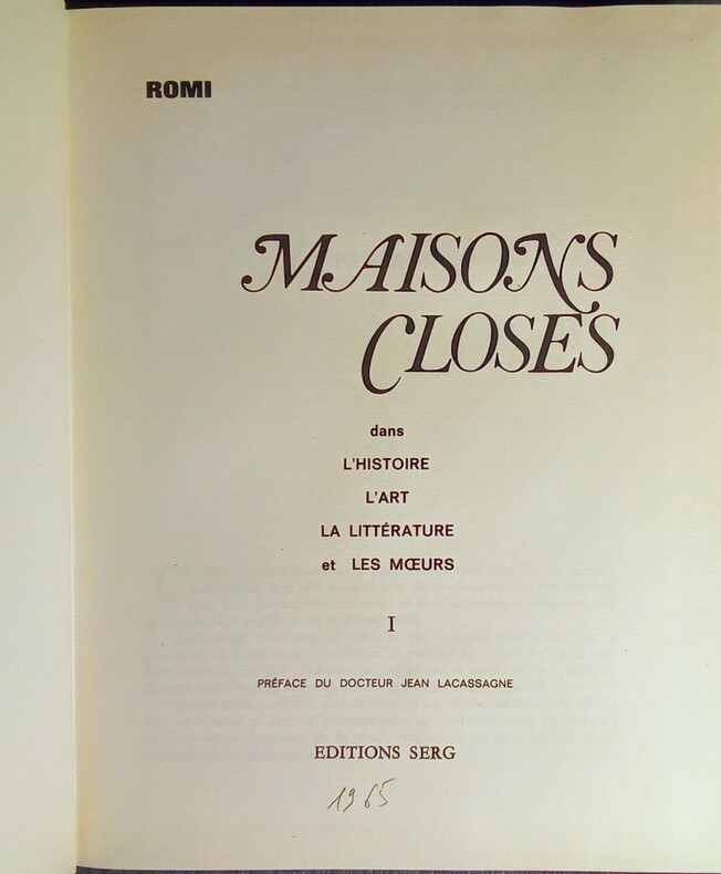 Livre. Préface du Dr Jean Lacassagne. Editions Serg, 1965.