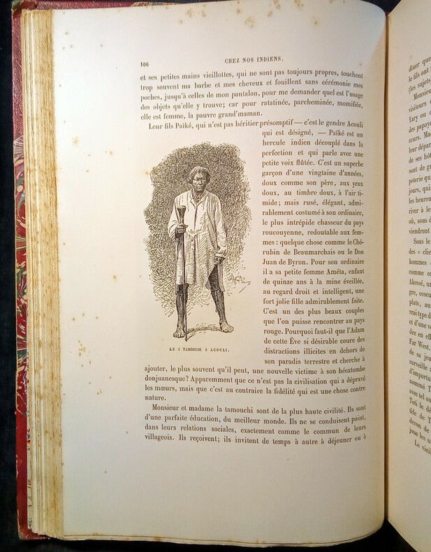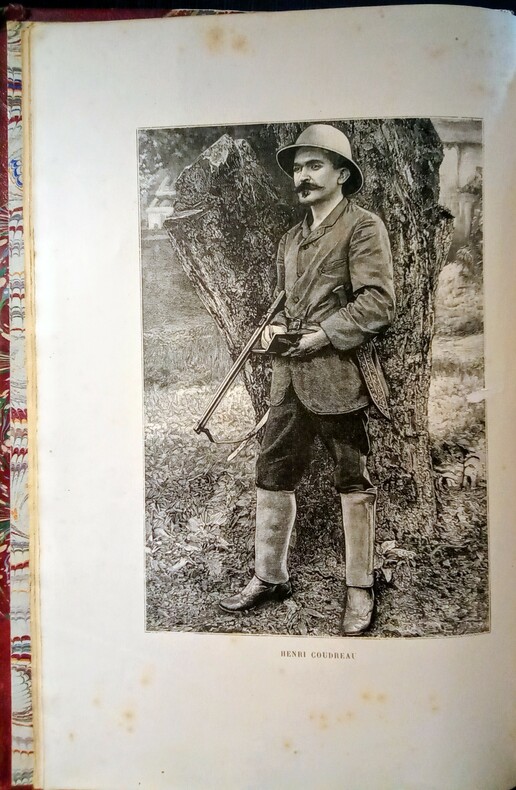 Illustré de 98 gravures et d'une grande carte dépliante "Guyane française d'après les plus récentes Explorations dessinée par J. Hansen, publiée par la Société de Géographie, Paris, 1892". Édition originale. Belle publication d'Henri Anatole Coudreau, un professeur d'histoire et géographie français, explorateur et géographe de la Guyane et des affluents de l'Amazone. C'est en 1881 qu'il est affecté comme professeur à Cayenne. Dès lors la Guyane devient son champ d'exploration. Il la parcourt en tous sens. Une première mission, obtenue du sous-secrétaire des Colonies, le conduit de 1883 à 1885, par Counani, de l'Aragouary à l'Amazone, au Rio Negro, au Rio Branco et aux montagnes de la Lune. Le ministère de l'Instruction publique et l'administration coloniale l'envoient de 1887 à 1889 au Maroni, à l'Oyapock et aux légendaires Monts Tumuc-Humac. Puis de 1889 à 1891, il visite les hauts affluents de l'Oyapock et du Jari, et toute la Guyane centrale, Inini, Camopi, Approuague. La mission d'information sur la frontière franco-brésilienne contestée de la Guyane française. Il a comme guide Apatou, qui avait été le guide de Jules Crevaux. À partir de 1893, il organise un service d'exploration dans l'État du Pará, et explore le Rio Tapajós, le Xingu, le Tocantins, l'Araguaya, l'Itaboca, l'Itacuyuna, la zone comprise entre le Tocantins et le Xingu, le Yamunda et enfin le Rio Trombetas. Il meurt le 10 novembre 1899, à 40 ans, en redescendant le Rio Trombetas, dont il venait de terminer l'exploration. (merci wiki). Coupes frottées, coins tapés. !!! !!! Du 3 octobre au 24 octobre il n'y aura pas d'expédition de colis: le libraire est en voyage. La librairie reste ouverte et nous répondrons sporadiquement aux emails. Merci pour votre compréhension. ––> From 3 October to 24 October, there will be no parcel deliveries as the bookseller will be travelling. The bookshop will remain open and we will respond to emails sporadically. Thank you for your understanding.