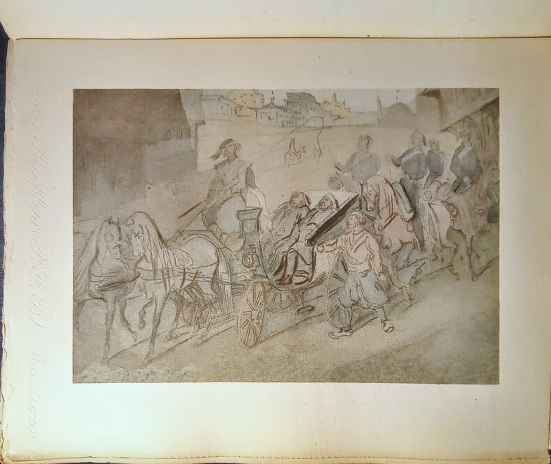 Avec illustrations hors- texte en couleurs et en noir. Reproduction intégrale des 16 aquarelles de Constantin Guys. Paris, Éditions René Kieffer, 1923. In-4 (31x2x24cm) broché avec les légendes sur le plat supérieur et au dos, couverture rempliée, manques au dos vers les coiffes. 85pp.