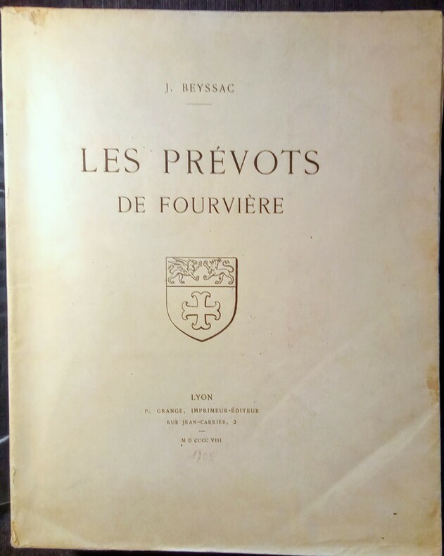 Illustré de nombreux blasons dans le texte, et une importante étude héraldique, généalogique et historique sur 47 Prévots et leurs familles. Lyon, P. Grange, 1908. Fort volume in-4 (28,5x4,5x23cm) broché avec les légendes imprimées sur le plat supérieur avec un blason et au dos, couverture rempliée, petite fente au dos. XXX,578pp.