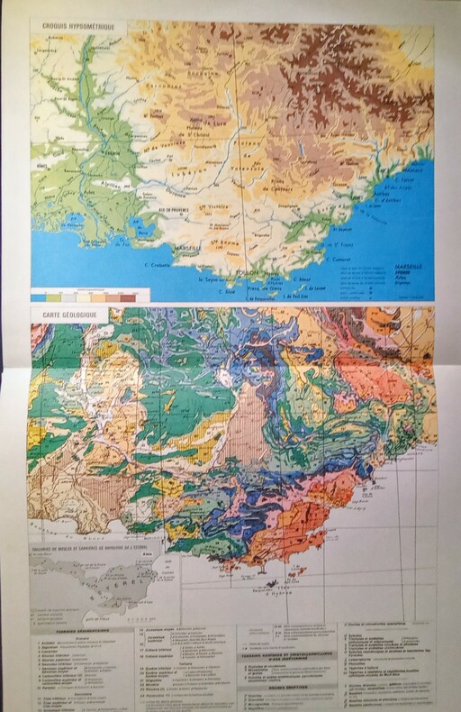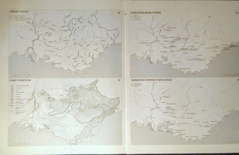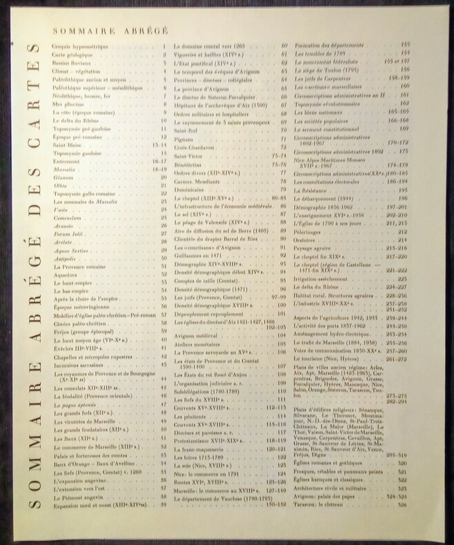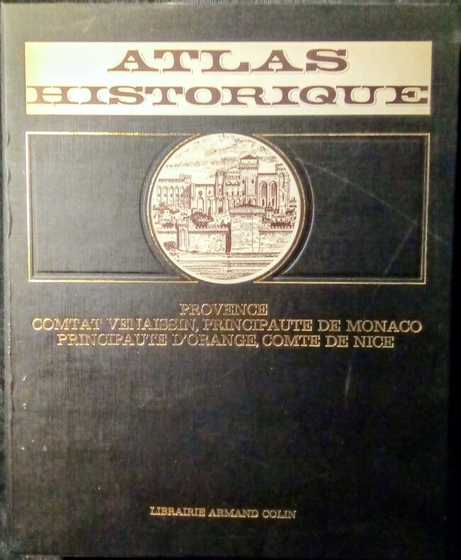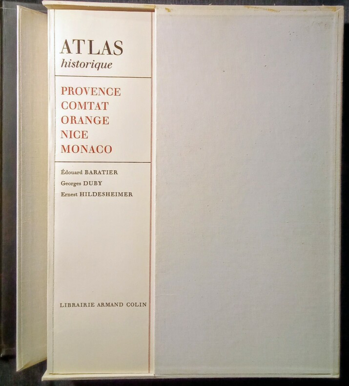 Provence, Comtat Venaissin, Principauté d'Orange, Comté de Nice, Principauté de Monaco. Librairie Armand Colin, 1969. In-4 (32x2x26cm) broché dos lisse et toile blanche de 222 pages et 326 cartes et plans en 37 feuillets doubles volants, sous coffret imprimé.