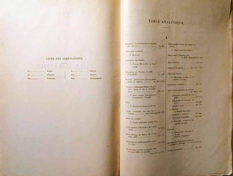 Paris, 1919, in-folio, reliure dos et coin cuir d'époque, xv – 428 pp. - 4 pp. - 33 pp. (tables analytiques) et 4 très grandes cartes dépliantes. Complet. Traité de Versailles. Etat général très bon, frottements au mors, dos quelque peu insolé ainsi que sur le haut du plat, coins usés. Intérieur très frais et cartes impeccables.