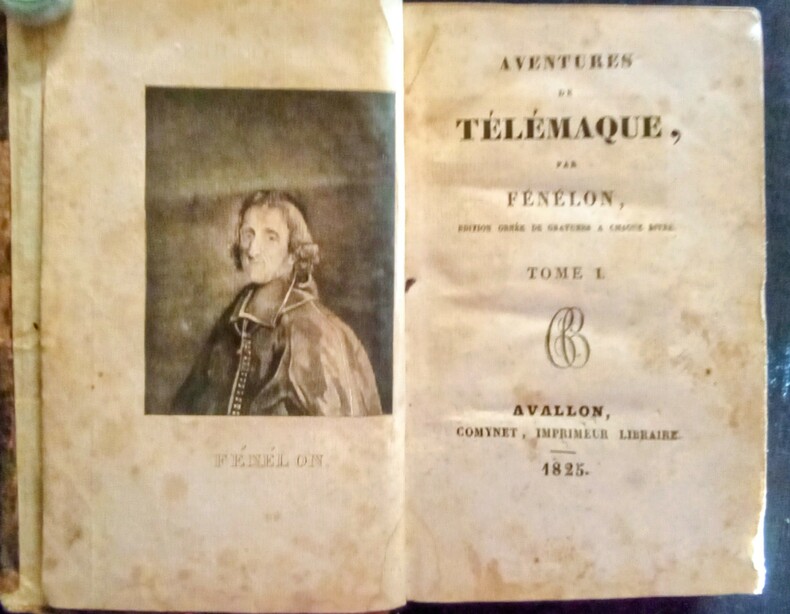Orné du portrait de Fénelon en frontispice, de 13 planches hors-texte et de 24 têtes de chapitres composants les 24 livres. Avallon, Comynet, Imprimeur Libraire, 1825. 2 volumes in-12 (16,5x10cm) reliés plein veau brun d'époque, dos ornés avec titre et nom dorés sur cuir marron, reliures un peu passé. 350pp. + 334pp.