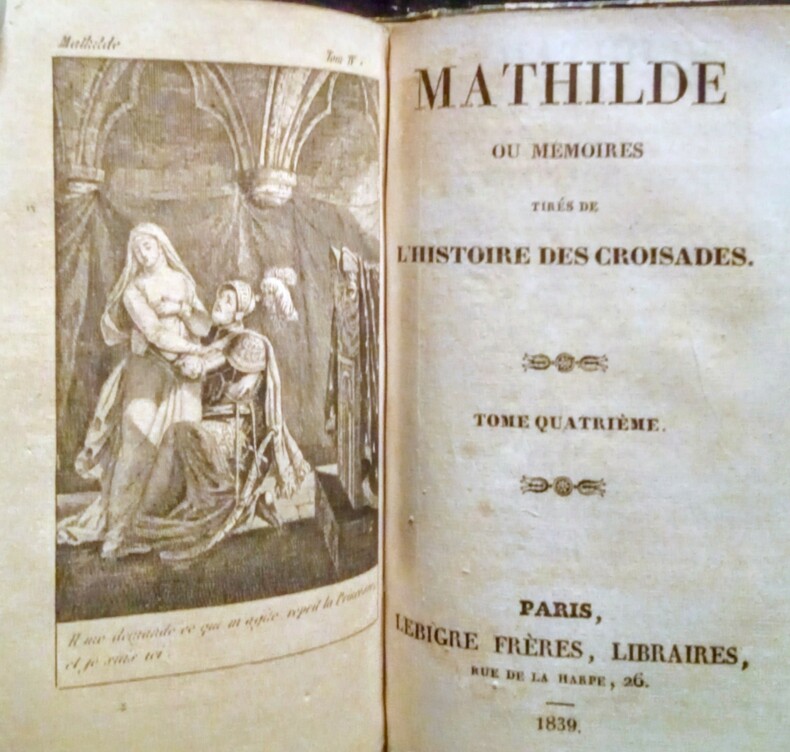Cette série, complète de Mathilde en 4 volumes, forme les volumes VIII à XI des Oeuvres de Mme Cottin parues en 1825 chez Lecerf.Charmant exemplaire en cartonnage romantique de l' époque (quelques piqûres, dos légèrement jaunis et frottés, 6 coins émoussés ). (GrG)