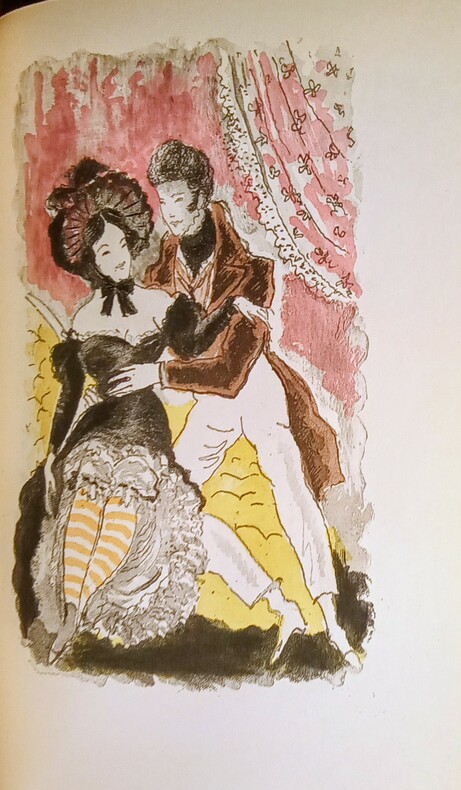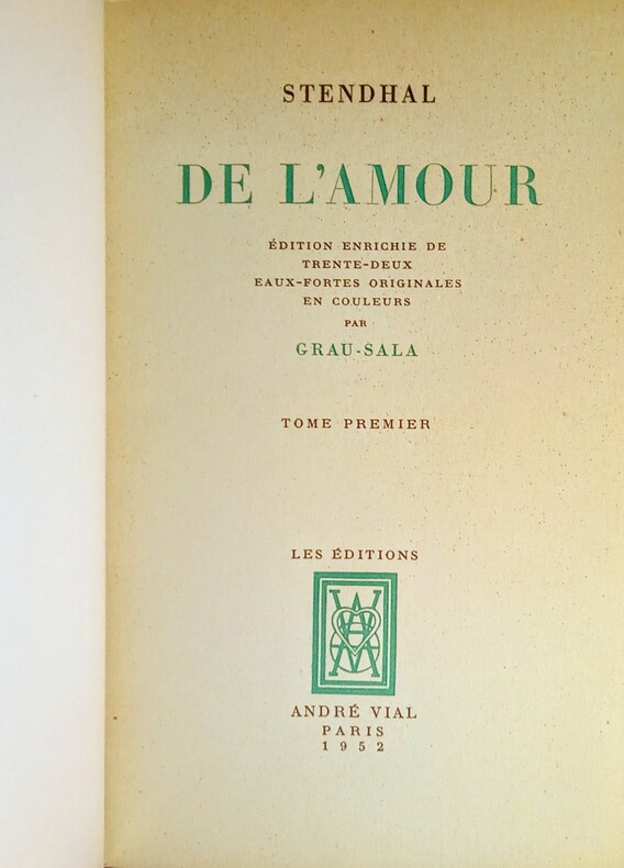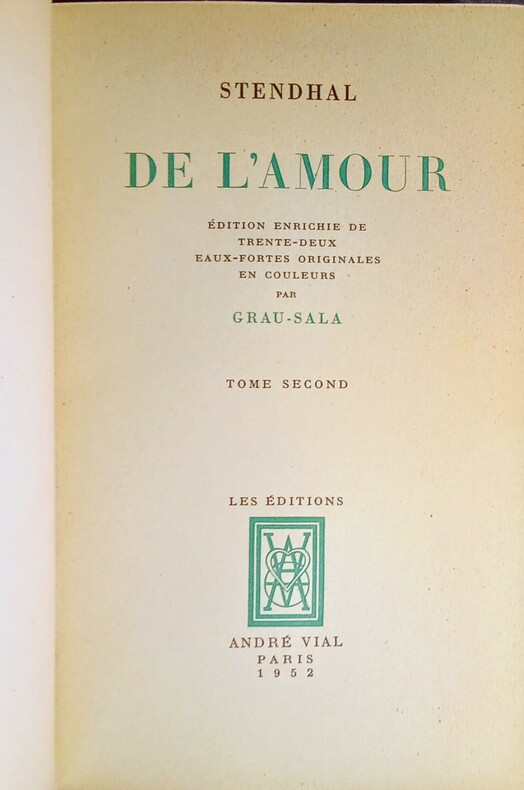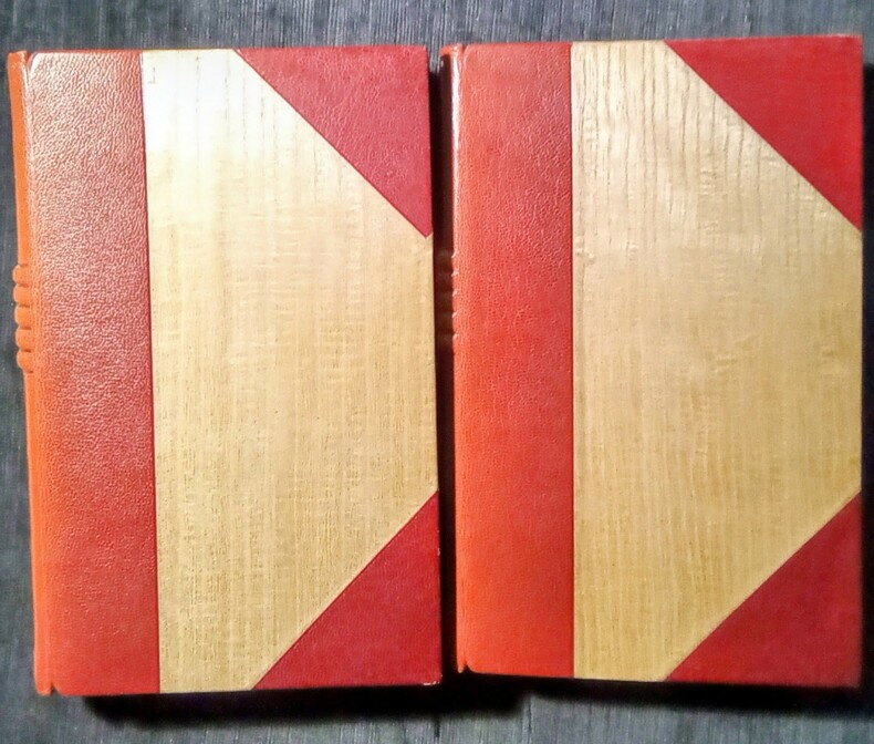 Édition enrichie de 32 eaux-fortes originales en couleurs hors-texte et dans le texte par Grau-Sala. Paris, Les Éditions André Vial, 1952. 2 volumes in-8 (23x3,5x14cm) reliés demi chagrin bordeaux à coins, dos à 5 nerfs groupés, nom, titre et tomaison dorés, têtes dorées, couvertures et dos conservés. 250pp. + 251pp.