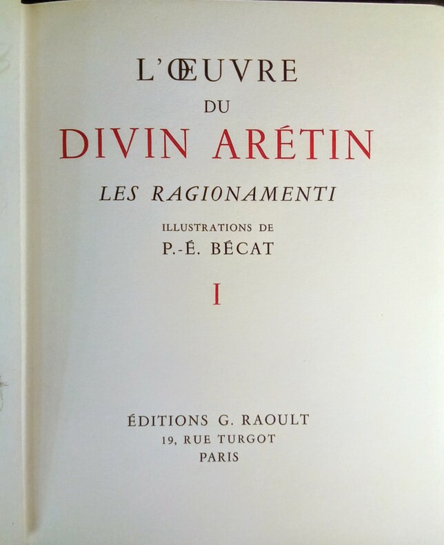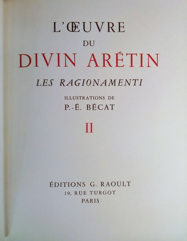 Le premier texte est illustré de d'un portrait de l'Arétin, le second de 8 planches hors-texte. 2 volumes de la collection des "Maîtres de l'Amour" publiés par Apollinaire, qui publiera en 1919 avec Fernand Fleuret et Félicien Perceau "l'Enfer de la bibliothèque nationale".