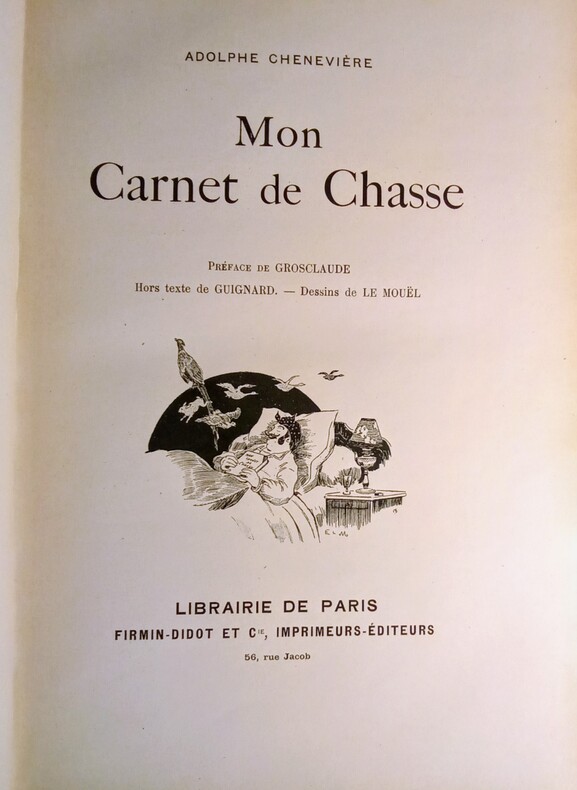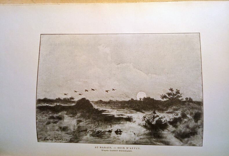 Préface de Grosclaude. Ouvrage illustré de hors texte de Guignard, et dessins dans le texte de Le Mouël. Paris, Librairie de Paris, Firmin-Didot et Cie, Imprimeurs-Éditeurs, sans date. In-8 (23,5x2x16cm) cartonnage éditeur plats crème, dos et coins percaline verte avec légendes dorées, plat supérieur orné d'une scène de marrais, roseaux et bécasses, avec le titre en jaune et marron, plat inférieur macaron de la maison d'édition au centre. XIV, 286pp.
