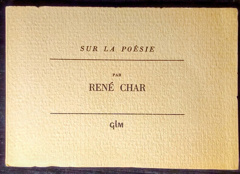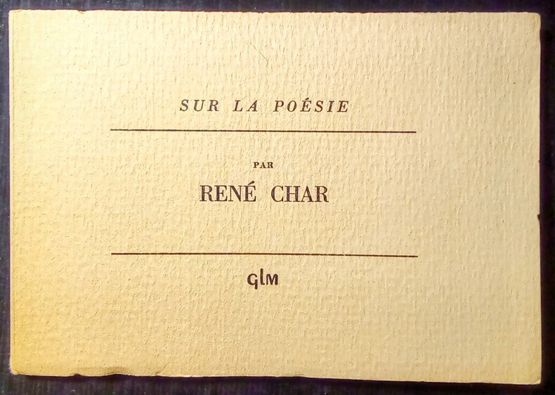 GLM, Troisième Cahier du Temps de la Poésie, 1952 In-8 broché (22,7 x 14,5 cm), 52 pages. Textes et dessins, Introduction de rené Char. Tirage limité à 1080 exemplaires numérotés , celui-ci le n° 1071 sur papier vélin. Très bon état.