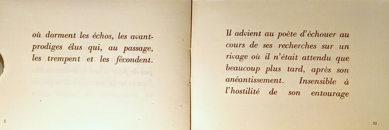 Édition originale. Tirage à 793 exemplaires, celui-ci n°21/48 sur Hollande Panneckock. Bibliographie des oeuvres de René Char de 1928 à 1963, par P. A. Benoit des édition Le Demi-jour 1964. Bon état.