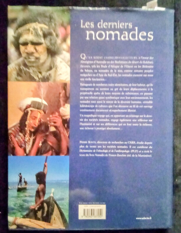 Peuples nomades contemporains. Une représentation cartographiée des sociétés nomades autour du monde (Pasteurs nomades – Chasseurs-collecteurs – Nomades de la mer). Nombreuses illustrations. Paris, Éditions Solar, 2004. Grand in-4 (33x2,5x24,5cm) toile éditeur sous jaquette illustrée en couleurs. 223pp.