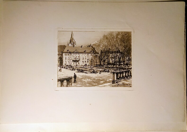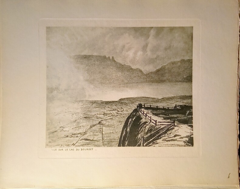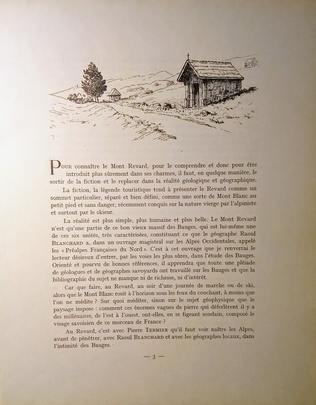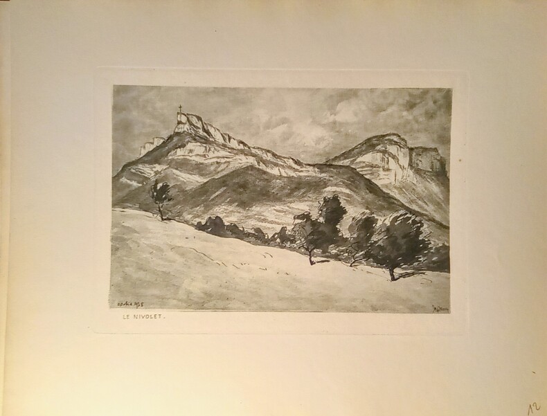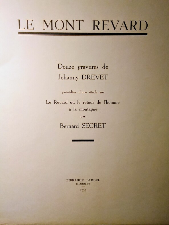 "Douze gravures de Joanny Drevet. Précédées d'une étude sur le Revard ou le Retour de l'Homme à la Montagne. Chambéry, Dardel, 1939. Petit in-folio, 22 p. en feuillets sous une chemise en papier fort.Avec 12 gravures sur papier pur fil B.F.K (1 eau-forte originale et 11 héliogravures), cet ouvrage est peu fréquent, ici en HC justifié par Joanny Drevet."