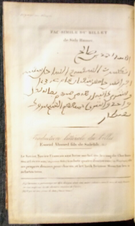 Paris, Librairie Universelle de P. Mongie Ainé, 1821, tome 1/2 vendu seul, 1 volume in-8 de 210x130 mm environ, xvj-348 pages, pleine basane brune, dos lisse portant titres et tomaisons dorés sur pièces bordeaux, orné de petits fers et petits motifs répétés aux entrenerfs, plats encadrés d'une petite frise dorée, gardes marbrées, tranches mouchetées. Avec une carte dépliante 3 gravures dépliantes et un fac-similé du billet de Sidy Hamet, un tampon de la bibliothèque de la Reine Palais Royal. Une coiffe ébréchée, coins émoussés, cuir fortement frotté, des rousseurs, petite déchirure sans manque sur la carte.