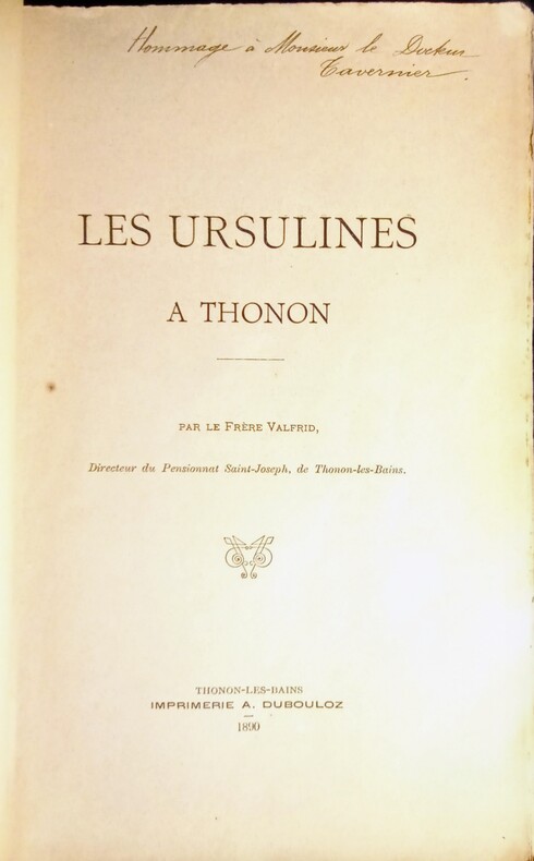 Thonon-Les-Bains, Imprimerie A. Dubouloz, 1890. In-8 (22,5x14,5cm) broché de couverture d'origine, avec coins cassés du plat supérieur. 128pp.