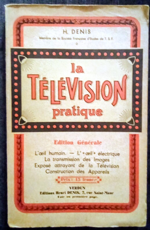 Édition Générale: L'oeil humain, l' oeil électrique, la transmission des Images, Exposé attrayant de la Télévision, Construction des Appareils. Orné de 110 figures. Verdun, éditions Henri Denis, 1938. In-8 (22x14cm) broché, couverture illustrée. 158pp.