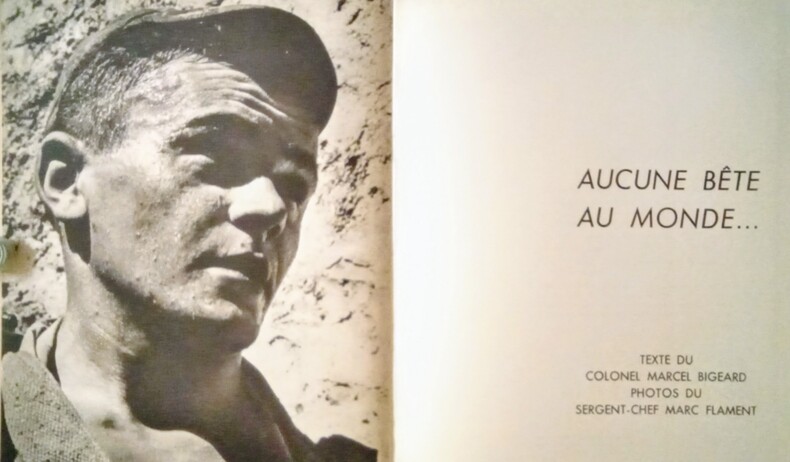 Texte du colonel Marcel Bigeard. Photos du Sergent-Chef Marc Flament. Editions de la Pensée Moderne. 1959. In-4 (30x24,5cm) cartonnage éditeur sous jaquette illustrée d'une photographie différentes des deux cotés. Petite restauration sur la jaquette. Ouvrage non paginé.