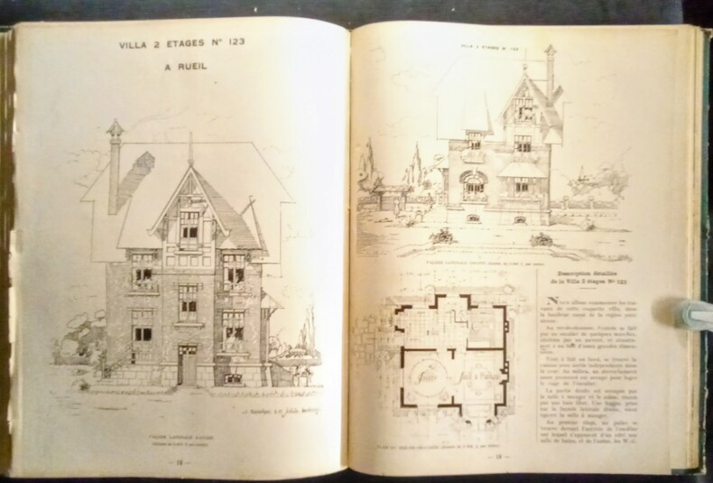 Soit les n°11-12-13-14-15-16-17-18-19 et 20 reliés en un volume constituant la 2ème Série de 96 Projets de Constructions. Coins légèrement faibles et un cahier déboîté.