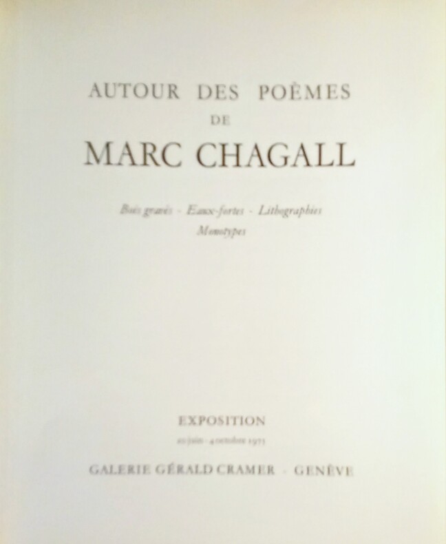 Ce catalogue, édité à l'occasion de l'Exposition Autour des Poèmes de MARC CHAGALL a été tiré à 1250 exemplaires le 14 juin 1975 sur les presses des Imprimerie Réunies S.A. Lausanne qui ont également réalisé la photolithographie.