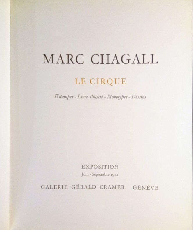 Ce catalogue, édité à l'occasion de l'Exposition de MARC CHAGALL «Le Cirque» a été tiré à 1500 exemplaires le 7 juin 1972 sur les presses des Imprimerie Réunies S.A. Lausanne qui ont également réalisé la photolithographie.