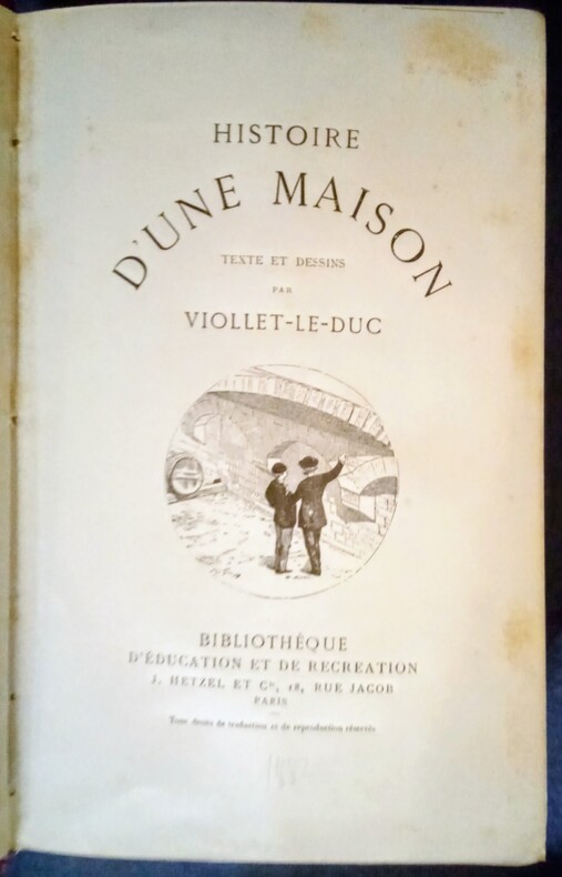 Texte et Dessins de Viollet-Le-Duc. Nombreuses figures et dessins in et hors texte et planches en couleurs. Paris, Bibliothèque d'Éducation et de Recréation, J. Hetzel & Cie, sans date (vers 1882 d'après le catalogue en fin de volume). Grand in-8 (25x3x15cm) percaline éditeur rouge ornée, tranches dorées. 260pp