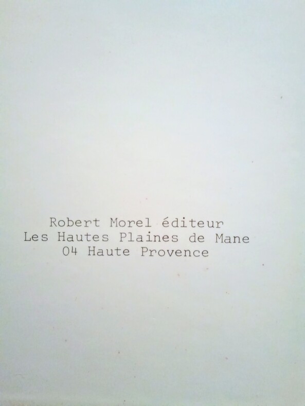 Robert Morel éditeur, Les Hautes Plaines de Mane, 1971. In-12 à l'italienne '12x17,5cm), reliure éditeur amovible toilée noire, titre rouge, feuillets détachables, sans pagination, sur papier couché.