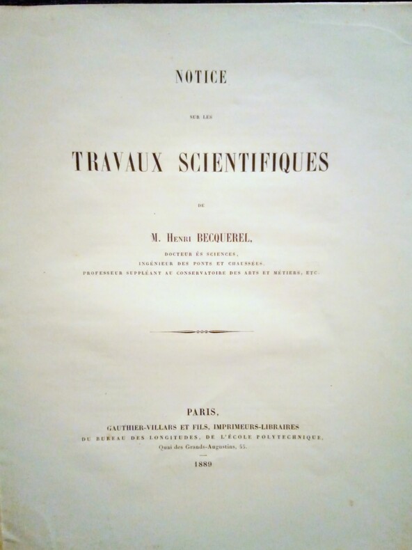 M. Henri BECQUEREL, Docteur ès Sciences, Ingénieur des Ponts et Chaussées, Professeur Suppléant au Conservatoire des Arts et Métiers, etc.