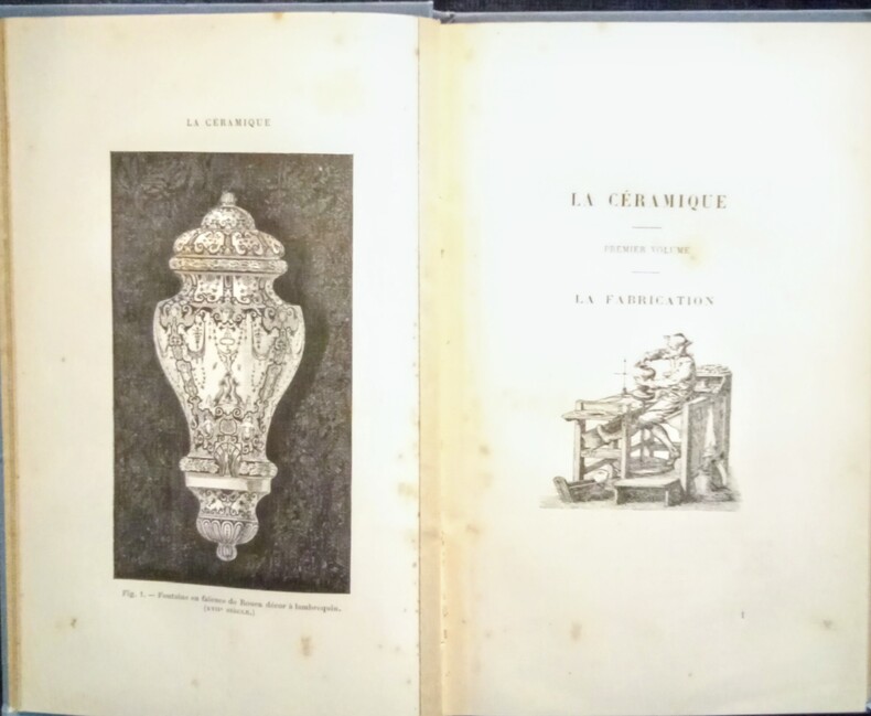 exemplaire moyen,fentes aux charnieres. Résumé historique. Poteries mates et lustrées. Poteries vernissées. Poteries émaillées. Porcelaines orientales. Porcelaines dures. Céramique anglaise. Poteries américaines, africaines, etc. Céramique architecturale.. Préface de Paul GASNAULT. Illustration d'après les dessins de l'auteur. Gravure de TRICHON. Remise de 20% pour toutes commandes supérieures à 200 €