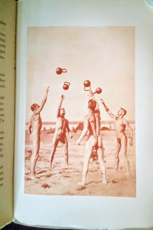 Editions Prima, Paris, 1929 In-12, reliure 1/2 basane beige, dos à 5 nerfs orné de fleurons dorés, pièces de titre bleues, couverture illustrée conservée, 189 pp. + 10 hors-texte imprimés en héliogravure (photographies non floutées) Bon exemplaire très frais sans aucune rousseurs. Cet ouvrage restitue une vision critique sur la nudité en vogue en Allemagne peu avant l'avènement d'Hitler au pouvoir. Bon exemplaire très frais dans une agréable reliure.