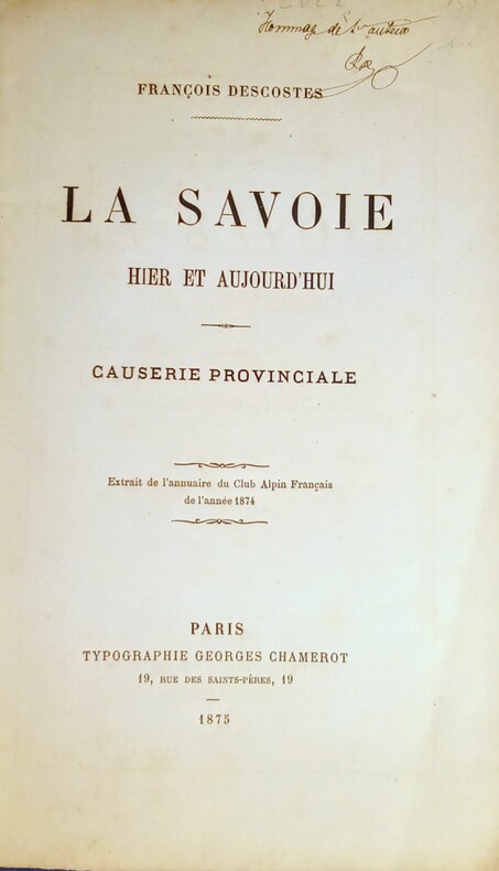 Paris, Typographie Georges Chamerot, 1875. In-8 (22x14cm) broché avec sa couverture d'origine.16pp. Avec envoi de l'auteur.