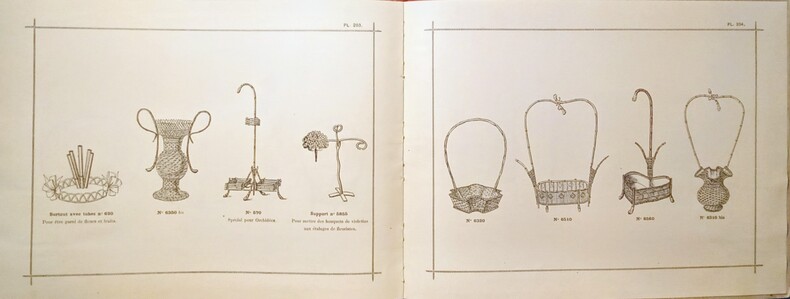 207 planches.Ouvrage entièrement composé de planches montrant des modèles et des techniques pour Fleuriste. MM. Tissot & Cie, Maison spécialiste de Fourniture et Accessoires pour Fleuriste, sans date vers 1900.In-4 -28x21,5cm, à l'italienne, dos percaline rouge muet, et plat supérieur orné du titre pris dans un décor de Houx, plat inférieur vignette de l'enseigne du Fleuriste Tissot. 207pp.