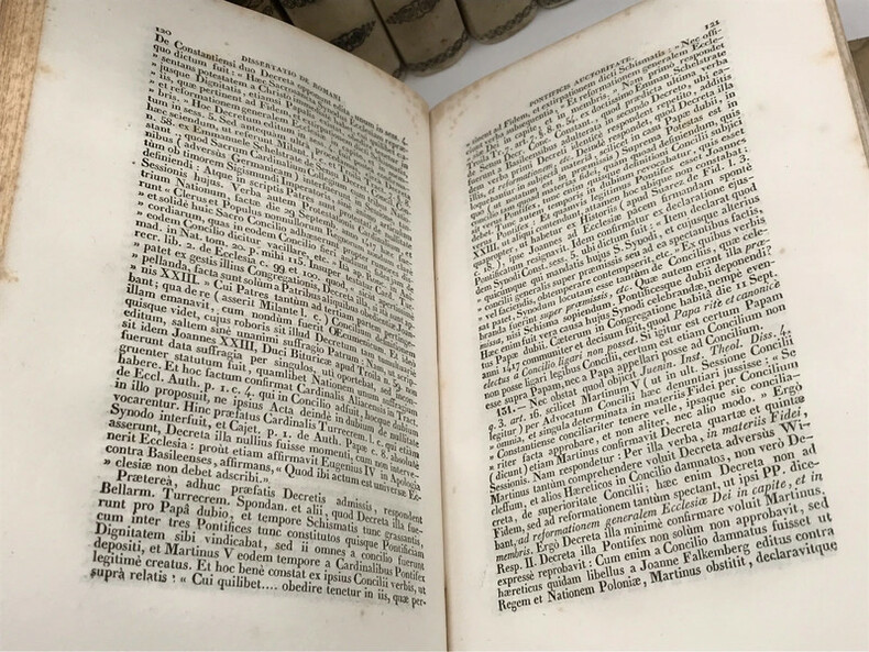 Editio quinta, auctior et novis curis expolitior, 2 vol. grand in-8 reliure de l'époque demi-chagrin brun, dos à 4 nerfs, Benziger Fratres, Neo-Eboraci, Cincinnati, S. Ludovici, Einsidlae, Burns & Oates, Londini, H. Casterman, Tornaci, 1882, xcv-495 ; 489 pp. et une centaine de feuillets dont 1 manuscrit et les autres vierges.
