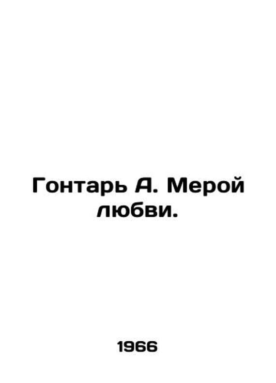 A Measure of Love. In Russian /Gontar A. Meroy lyubvi. M. Art Literature 1966. 256 p.We have thousands of titles and often several copies of each title may be available. Please feel free to contact us for a detailed description of the copies available.SKUalb000bb8b0ef79c0e5.