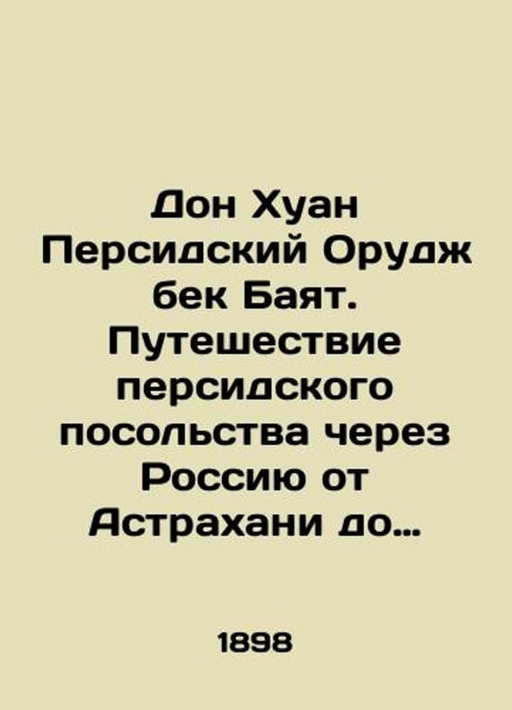 Don Juan Persian Oruj bek Bayat: The Persian Embassy's Journey through Russia from Astrakhan to Arkhangelsk 1599-1600. In Russian (ask us if in doubt)/Don Khuan Persidskiy Orudzh bek Bayat. Puteshestvie persidskogo posol'stva cherez Rossiyu ot Astrakhani do Arkhangel'ska v 1599 1600 gg. Translated from Spanish by S. Sokolov M.: University Printing House 1898 IV 19c. We have thousands of titles and often several copies of each title may be available. Please feel free to contact us for a detailed description of the copies available. SKUalb003af9176720fd2e