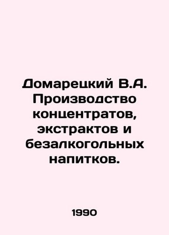 Domaretsky V.A. Production of concentrates, extracts and soft drinks. In Russian /Domaretskiy V.A. Proizvodstvo kontsentratov, ekstraktov i bezalkogolnykh napitkov. Reference book. Kyiv Harvest 1990. The book describes technologies for obtaining natural concentrates, extracts and soft drinks. Properties of valuable medicinal plants are described.We have thousands of titles and often several copies of each title may be available. Please feel free to contact us for a detailed description of the copies available.SKUalb005c281d56cfb6c4.