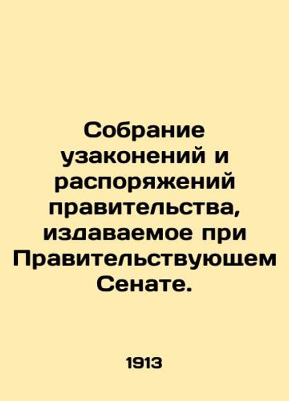Assembly of Laws and Orders of the Government issued by the Government Senate. In Russian (ask us if in doubt)/Sobranie uzakoneniy i rasporyazheniy pravitelstva izdavaemoe pri Pravitelstvuyushchem Senate. 1913. Second Department. Second half. NN 170-227. St. Petersburg. Senate Printing House. 1913. 2054 p. We have thousands of titles and often several copies of each title may be available. Please feel free to contact us for a detailed description of the copies available. SKUalb00d21c179455f350