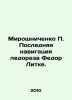 Miroshnichenko Last navigation of the ice cutter Fedor Litke. In Russian /Miroshnichenko Poslednyaya navigatsiya ledoreza Fedor Litke. Norilsk Apex 2010. We have thousands of titles and often several copies of each title may be available. Please feel free to contact us for a detailed description of the copies available. SKUalb00eef9fbd5774e57.
