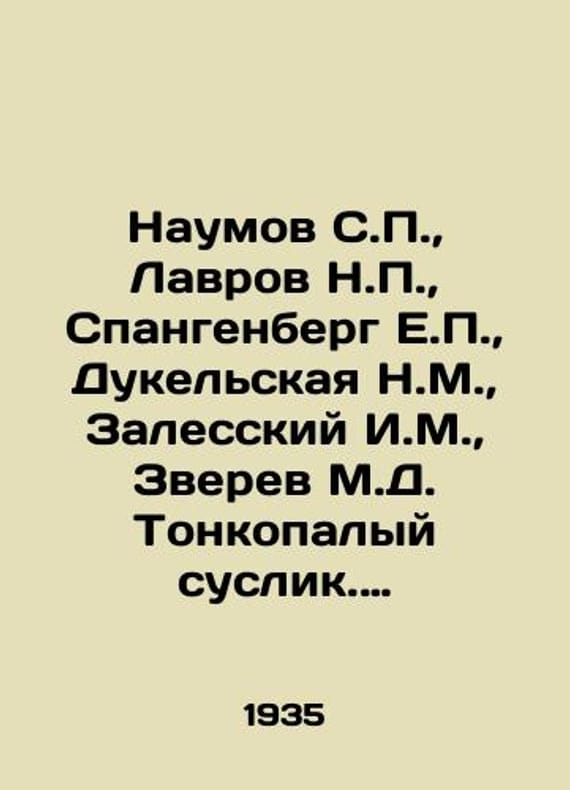 Naumov S., Lavrov N., Spangenberg E., Dukelskaya N.M., Zalessky I.M., Zverev M.D. Tonkopalyy worm. Sonia the regiment. Blind. Burunduk In Russian /Naumov S., Lavrov N., Spangenberg E., Dukelskaya N.M., Zalesskiy I.M., Zverev M.D. Tonkopalyy suslik. Sonya-polchok. Slepysh. Burunduk Moscow-Leningrad All-Union Cooperative United Publishing House 1935. We have thousands of titles and often several copies of each title may be available. Please feel free to contact us for a detailed description of the copies available. SKUalb0100a15677584378.