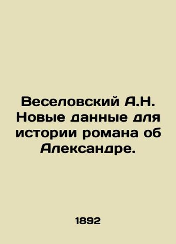Veselovsky A. N. New data for the history of the novel about Alexander. In Russian (ask us if in doubt)/Veselovskiy A. N. Novye dannye dlya istorii romana ob Aleksandre. Compilation of the Department of Russian Language and Literature of the Imperial Academy of Sciences. Volume LIII # 7. St. Petersburg: type. Imp. Academy of Sciences 1892 2 167 p. SKUalbc3346a8085c994d9.