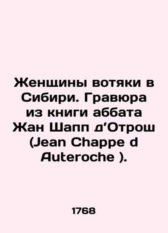 Women in Siberia. An engraving from the book of Abbot Jean Chappe d'Auteroche. In Russian (ask us if in doubt)/Zhenshchiny votyaki v Sibiri. Gravyura iz knigi abbata Zhan Shapp d'Otrosh (Jean Chappe d Auteroche ).. description: In Russian (ask us if in doubt).1768 engraving from the book Chappe d'Auteroche. Voyage en Siberie fait par ordre du roi en 1761. # 28. Women of Wotyaks (Udmurts) in Siberia We have thousands of titles and often several copies of each title may be available. Please feel free to contact us for a detailed description of the copies available. SKUalb019f24818448abe6