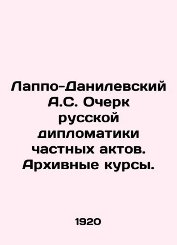 A.S. Lappo-Danilevsky Essay on Russian Diplomacy of Private Acts. Archival Cours. Archival Courses. Lectures given to students of archival courses at the Petrograd Archaeological Institute in 1918 St. Petersburg Second State Type 1920 1 189 p. SKUalb0214866189a8a7df.