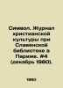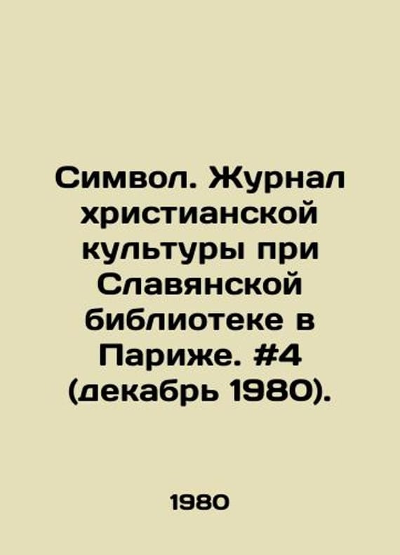 Symbol. Journal of Christian Culture at the Slavic Library in Paris. # 4 (December 1980). In Russian /Simvol. Zhurnal khristianskoy kultury pri Slavyanskoy biblioteke v Parizhe. #4 (dekabr 1980). Paris: Slavic Library, 1980, 192c.We have thousands of titles and often several copies of each title may be available. Please feel free to contact us for a detailed description of the copies available.SKUalb0224f242bf1c78c0.