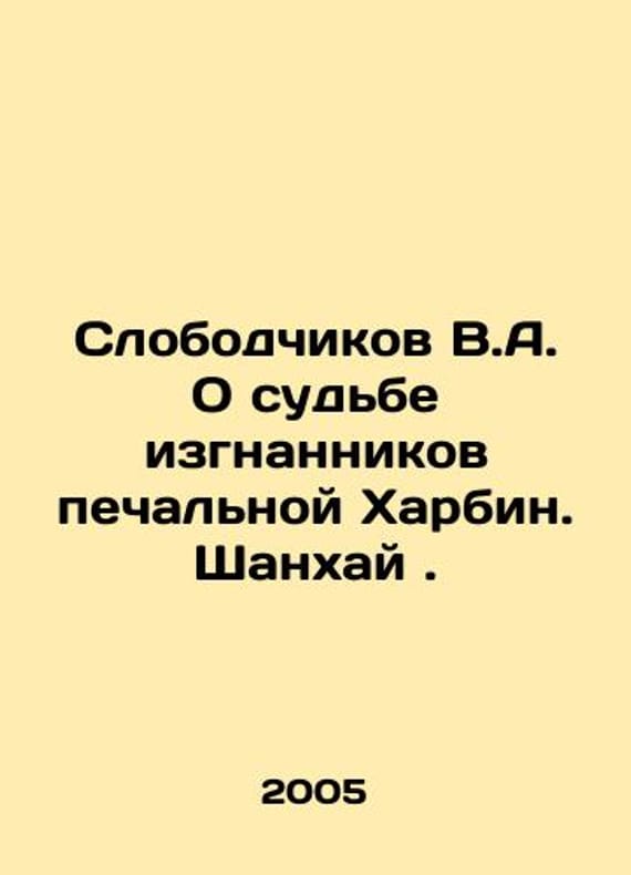 Slobodchikov V.A. On the fate of the exiles of sad Harbin. Shanghai. In Russian /Slobodchikov V.A. O sudbe izgnannikov pechalnoy Kharbin. Shankhay.Series: Russia Forgotten and Unknown. People and Times in Moscow. Central Polygraph 2005.We have thousands of titles and often several copies of each title may be available. Please feel free to contact us for a detailed description of the copies available. SKUalb022f0a56871a7f5a.