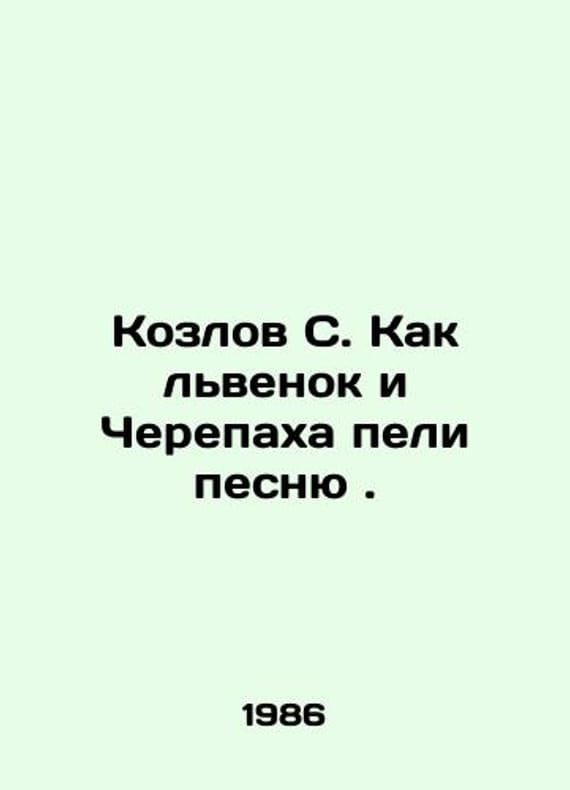 Kozlov S. Like a lion and a turtle singing a song. In Russian /Kozlov S. Kak lvenok i Cherepakha peli pesnyu. Tales. Artist L. Shulgina. M. Det. Lit. 1986. We have thousands of titles and often several copies of each title may be available. Please feel free to contact us for a detailed description of the copies available. SKUalb024fb74bb83db21e.