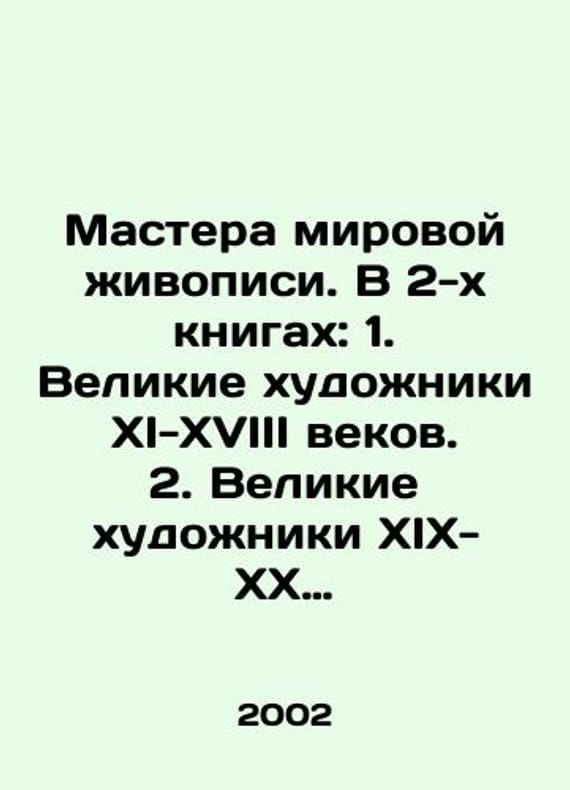 Masters of World Painting. In 2 books: 1. Great Artists of the XI-XVIII centuries. 2. Great Artists of the XIX-XX centuries In Russian /Mastera mirovoy zhivopisi. V 2-kh knigakh: 1. Velikie khudozhniki XI-XVIII vekov. 2. Velikie khudozhniki XIX- KhKh vekov Series: Encyclopedia of World Art. M. White City. 2002. 512s. We have thousands of titles and often several copies of each title may be available. Please feel free to contact us for a detailed description of the copies available. SKUalb02d62f3e8c2c8227.
