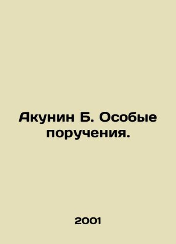 Akunin B. Special assignments. In Russian /Akunin B. Osobye porucheniya. Two novels about the adventures of Erast Fandorin. Hud K. Pobein. (New detective). M. Zakharov. 2001.We have thousands of titles and often several copies of each title may be available. Please feel free to contact us for a detailed description of the copies available. SKUalb02fe926b7450e521.