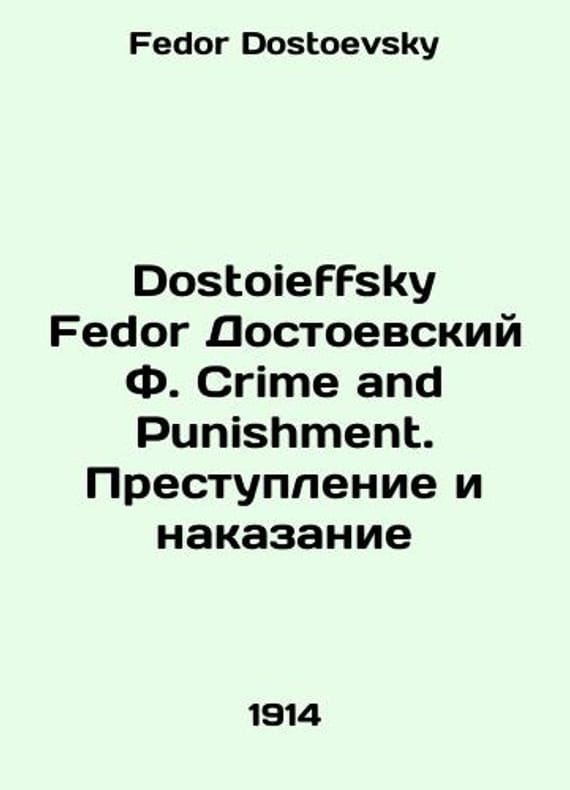 Dostoieffsky Fedor Dostoevsky F. Crime and Punishment. Crime and Punishment In Russian /Dostoieffsky Fedor Dostoevskiy F. Crime and Punishment. Prestuplenie i nakazanie London J. M. Dent and Son 1914. 470 p. We have thousands of titles and often several copies of each title may be available. Please feel free to contact us for a detailed description of the copies available. SKUalb03f80162a4c9220d.
