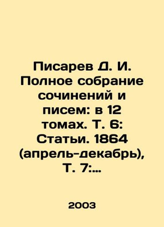 Pisarev D. I. Complete collection of essays and letters: in 12 volumes. Vol. 6: Articles. 1864 (April-December), Vol. 7: Articles. 1865 (January-August), Vol. 8: Articles. 1865 (September-December) -1866 (January-March), Vol. 9: Articles. 1867. In Russian /Pisarev D. I. Polnoe sobranie sochineniy i pisem: v 12 tomakh. T. 6: Stati. 1864 (aprel-dekabr), T. 7: Stati. 1865 (yanvar-avgust), T. 8: Stati. 1865 (sentyabr-dekabr)-1866 (yanvar-mart), T. 9: Stati. 1867. Moscow: Science, 2003-2005, 621 and 672 and 600 and 549 p.We have thousands of titles and often several copies of each title may be available. Please feel free to contact us for a detailed description of the copies available.SKUalb0401113a56851420.
