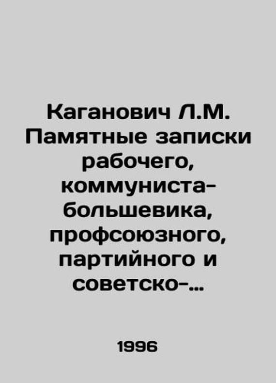 Kaganovich L.M. Memorabilia of a worker, a Bolshevik communist, a trade union worker, a party worker, and a Soviet-state worker In Russian /Kaganovich L.M. Pamyatnye zapiski rabochego, kommunista-bolshevika, profsoyuznogo, partiynogo i sovetsko-gosudarstvennogo rabotnikaMy 20th Century M Wagrius 1996.We have thousands of titles and often several copies of each title may be available. Please feel free to contact us for a detailed description of the copies available. SKUalb044645cae735fdf4.