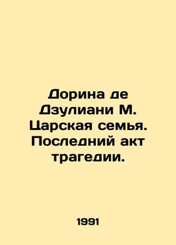 Dorina de Zuliani M. The Royal Family: The Last Act of Tragedy. In Russian /Dorina de Dzuliani M. Tsarskaya semya. Posledniy akt tragedii.Translation from the Italian E.Arkhipova Milan-Moscow Rizzoli-Hud.lit. 1991.We have thousands of titles and often several copies of each title may be available. Please feel free to contact us for a detailed description of the copies available. SKUalb044dac6ed249f85f.