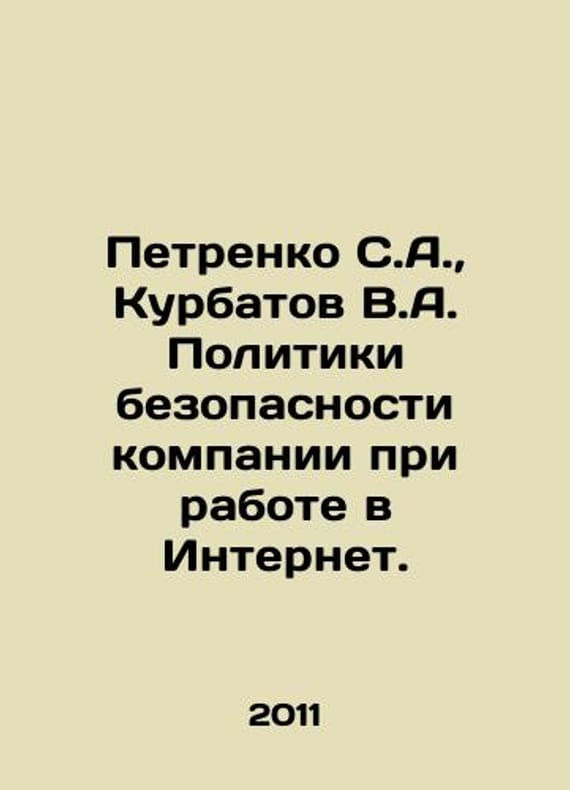 Petrenko S.A., Kurbatov V.A. Security policies of the company when working in the Internet. In Russian /Petrenko S.A., Kurbatov V.A. Politiki bezopasnosti kompanii pri rabote v Internet. Information Technologies for Engineers M. Academy of IT 2011. 400 p.We have thousands of titles and often several copies of each title may be available. Please feel free to contact us for a detailed description of the copies available.SKUalb048b5c4bc5e9e936.