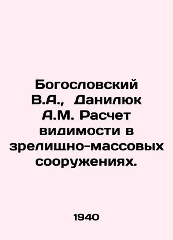 Theological V.A., Danilyuk A.M. Calculation of visibility in entertainment and mass constructions. In Russian /Bogoslovskiy V.A., Danilyuk A.M. Raschet vidimosti v zrelishchno-massovykh sooruzheniyakh. M. Academy of Architecture of the USSR. 1940. 140s.We have thousands of titles and often several copies of each title may be available. Please feel free to contact us for a detailed description of the copies available.SKUalb052e48da15dabccd.